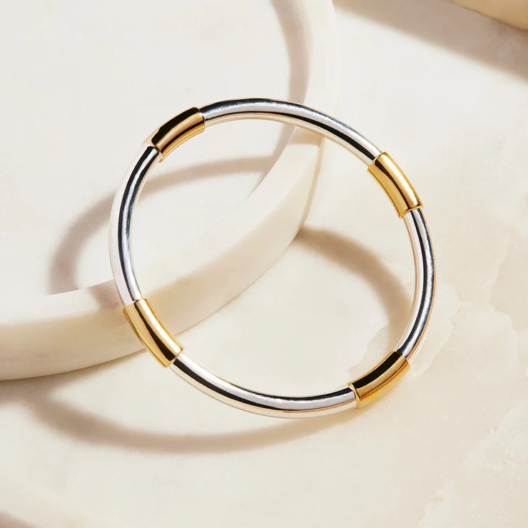 Diffusing an endless summer essence, the heavenly Amalfi Bangle symbolises perpetual warmth and optimism. Our Thai artisans handcraft her form, uniting sterling silver with beams of yellow gold plating to mirror the interplay of light and shadow on beautiful sun-soaked days. Her effortless elegance makes you look and feel magical, whether you flaunt her solo or layered for an adorned Amalfi look.
