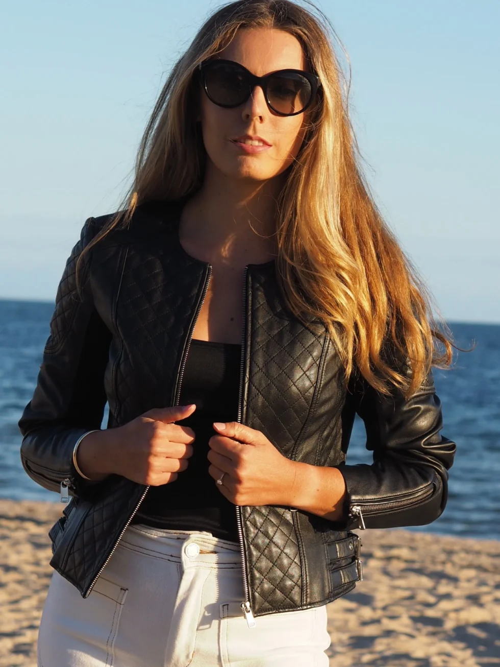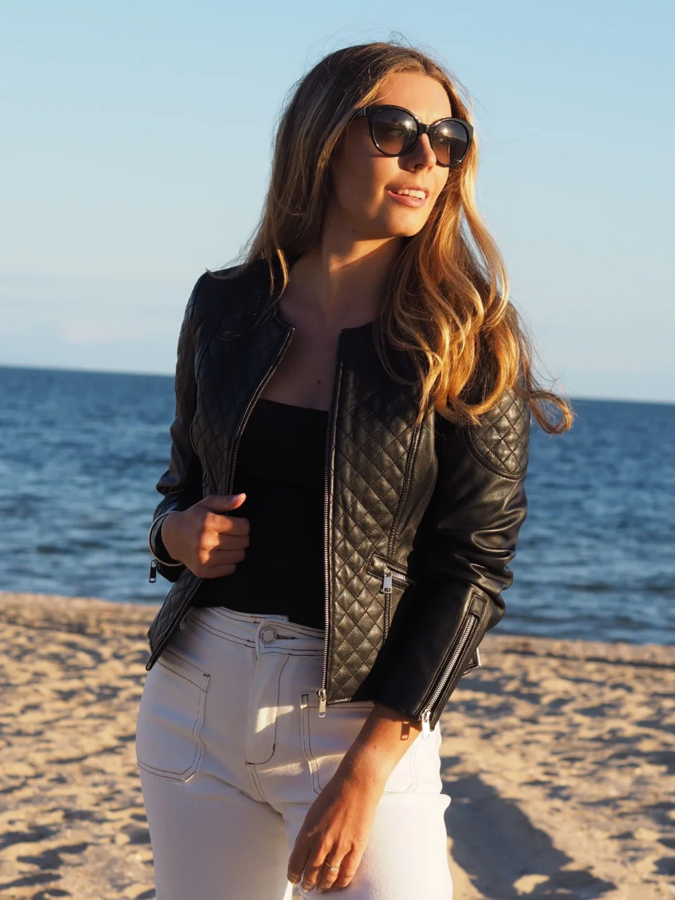 Quilted stitching highlights and stretch panels in the sleeves make this an easy jacket to wear year round; zipped up with a scarf for winter or throw it over a summer dress for those cooler evenings