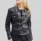 - Gold studs highlight the design lines of the classic jean jackets shape