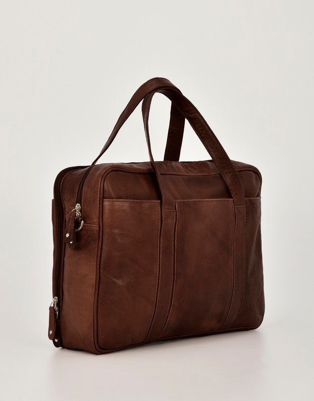 Cobb & Co’s Kemp Leather Laptop Bag crafted from durable water buffalo leather is a functional & stylish multi compartment briefcase. The rich washed leather texture is accentuated by the antique complimentary hardware & it features handy front pockets & multiple main zip compartments to divide your laptop, papers & personal essentials. The bag features two top handles as well as a detachable & adjustable strap & has many zip and slip pockets to fit all your essentials.