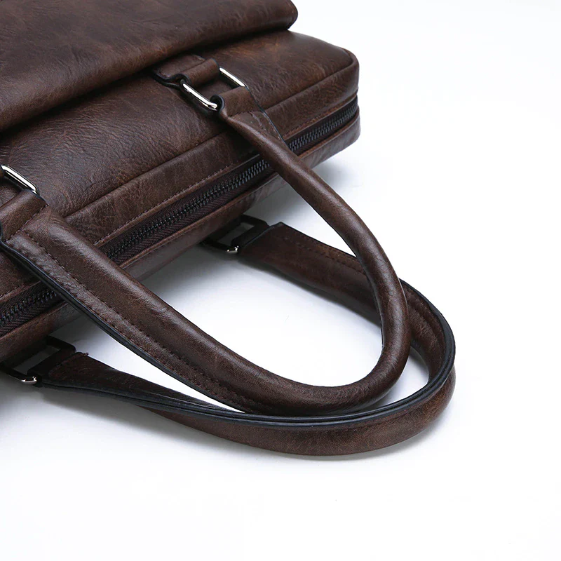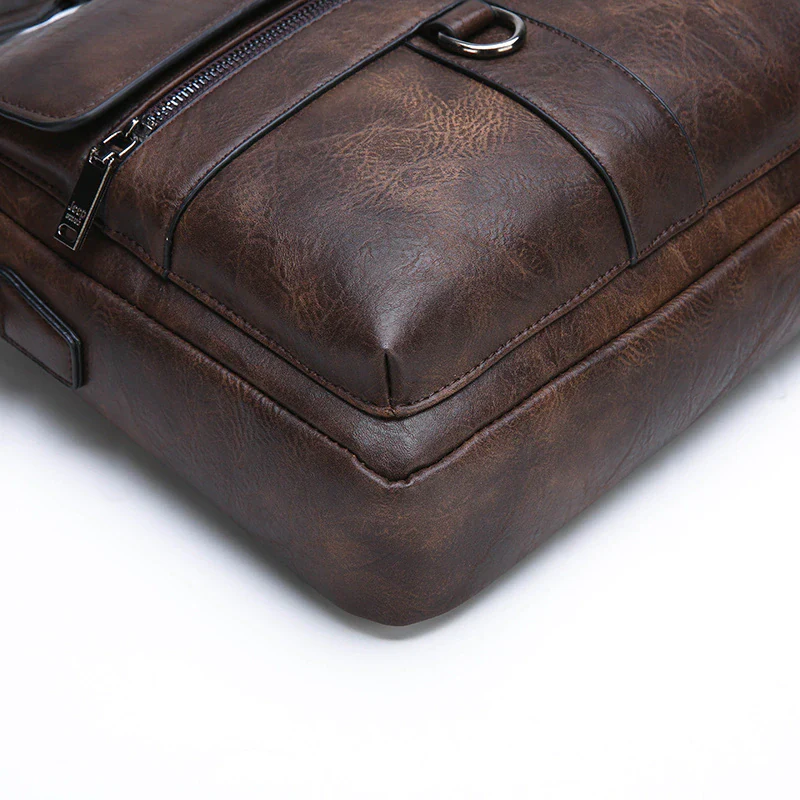 The Leather Messenger Bag may look simple but it is a reliable bag to carry your laptop. With a spacious main compartment and outside pockets, it will easily hold any 15-inch laptop.