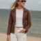 - A classic single breasted revere collar jacket that is secured with a silver metal zip closure