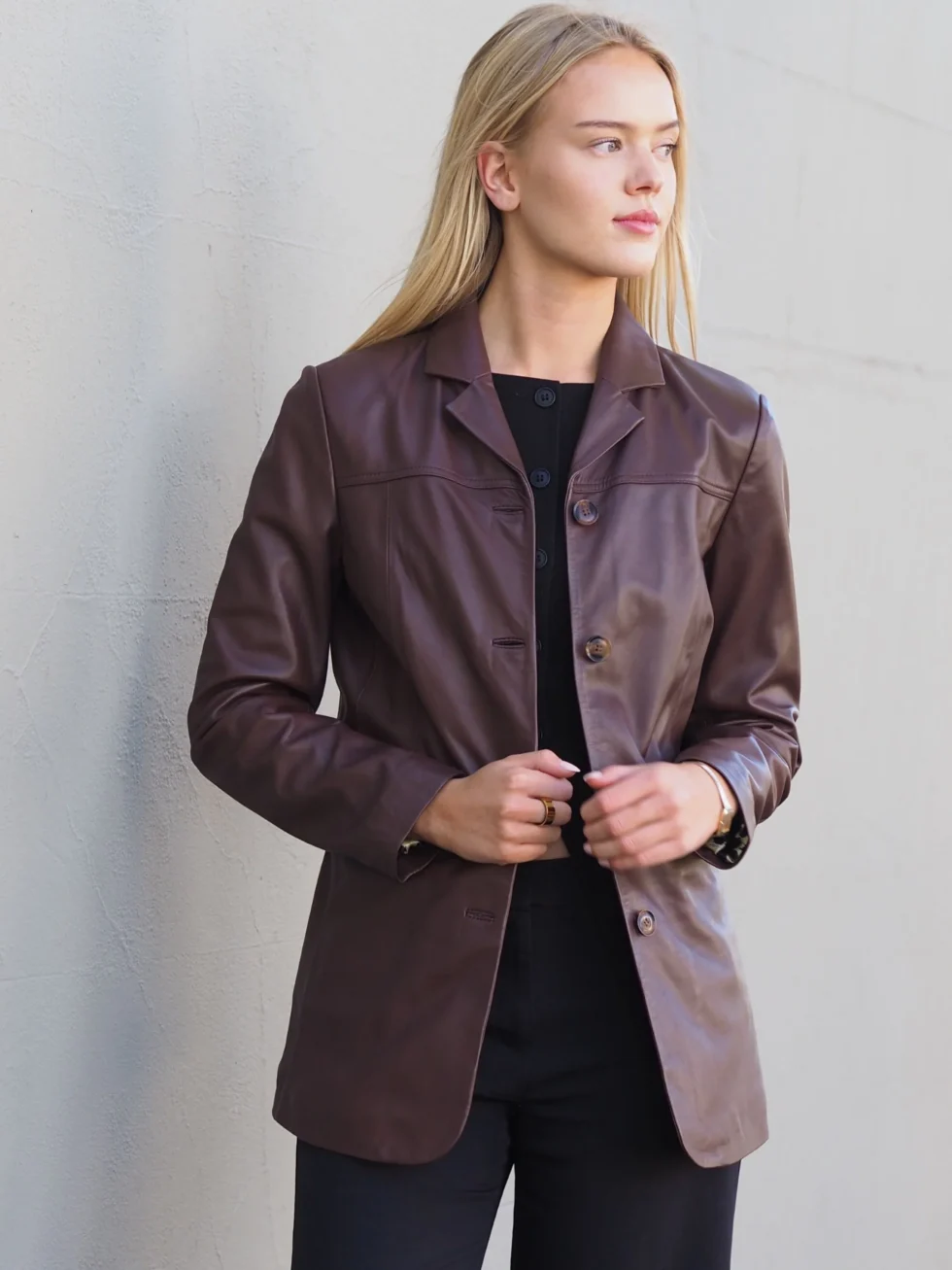 Your everyday blazer is upscaled in buttery soft chocolate leather