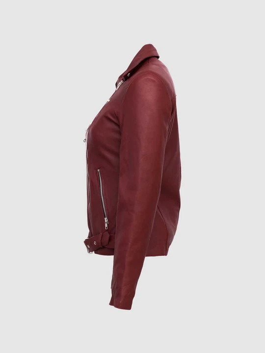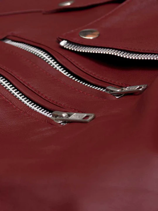 Maroon Leather Biker Jacket