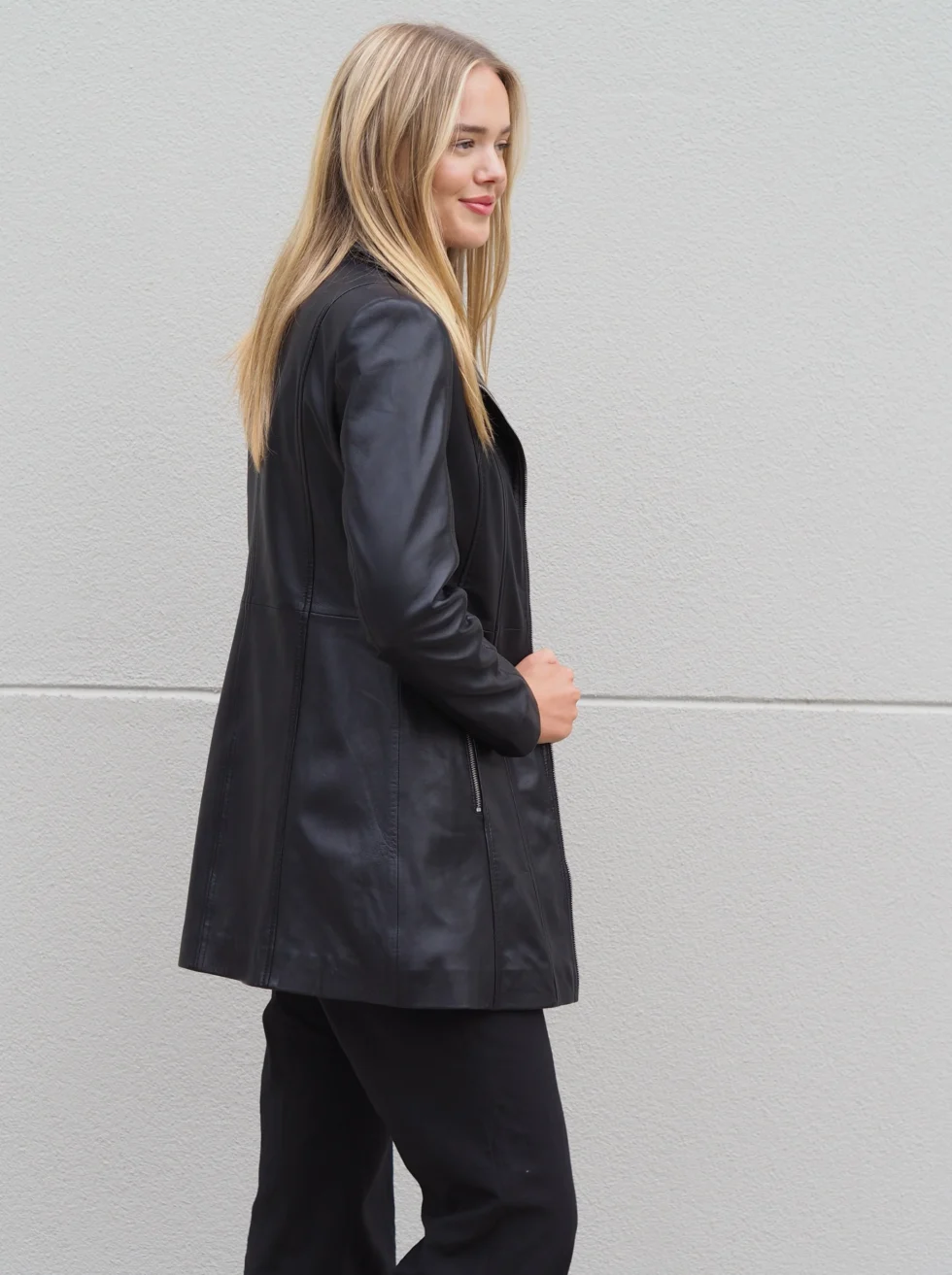 The Matilda mid length leather jacket is one that will be a staple in your wardrobe for years to come; the combination of buttery soft leather and a classic shape make it a timeless style