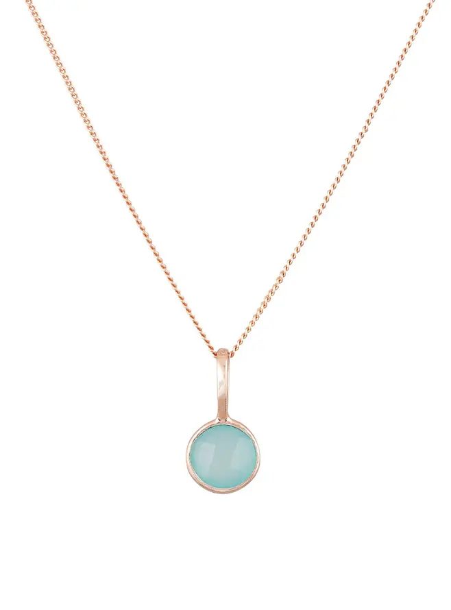 Nicole Fendel Rose Gold Selene Single Aqua Chalcedony Pendant Necklace