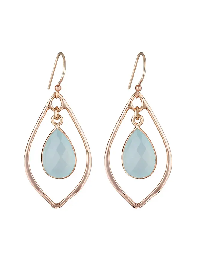 Nicole Fendel Rose Gold Selene Teardrops Stone Earrings Aqua Chalcedony
