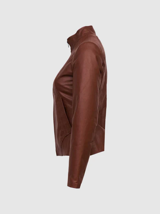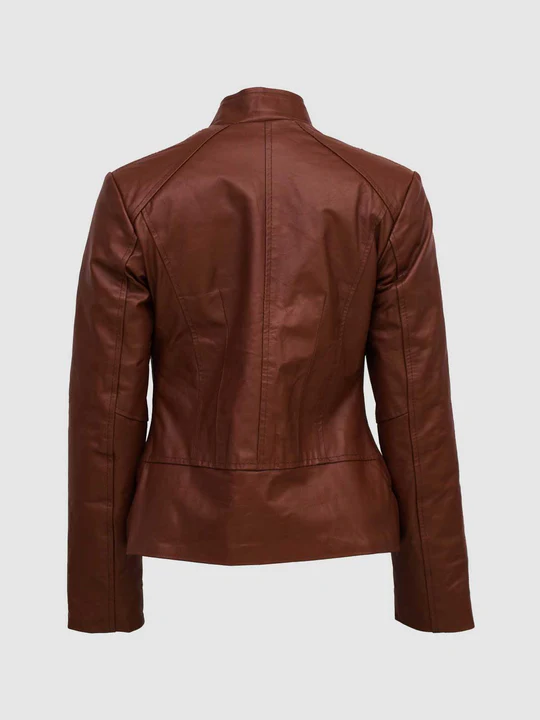 Presenting One of the most “hip” new design in Classic Women Tan Brown Leather Jacket you’d find on the streets. Made from the finest sheep nappa leather this biker jacket has a front YKK zipper closure and side pockets, giving it a style like none other. A smart feminine fit and a silky smooth feel. With a Ban collar and exquisite stitching giving it an extremely “cool” look. We certify that every is unique, from the color to stitching & leather quality softness.